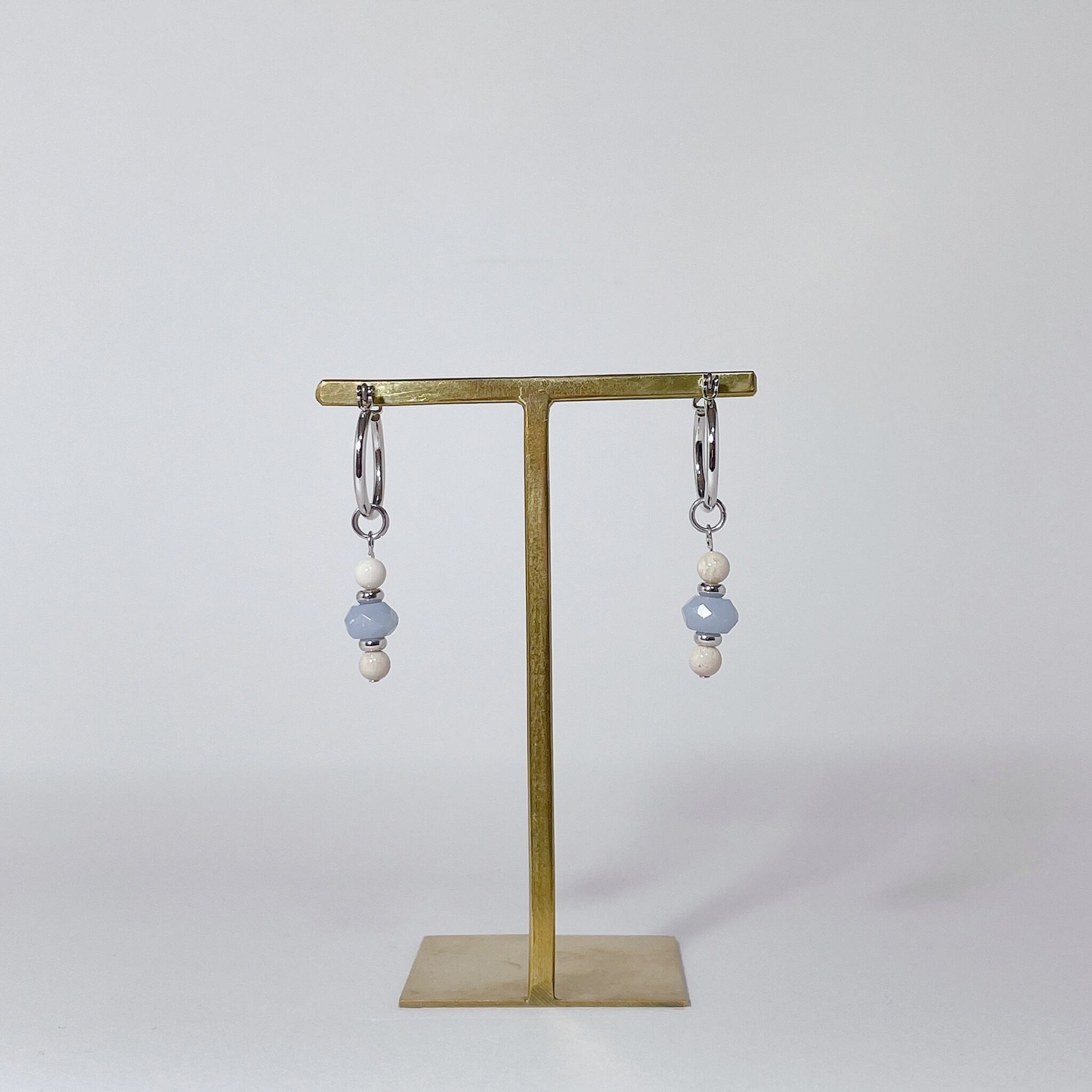 ブルーのストーンビーズはカット部分が優しく光を反射するのがさりげない可愛さ。
