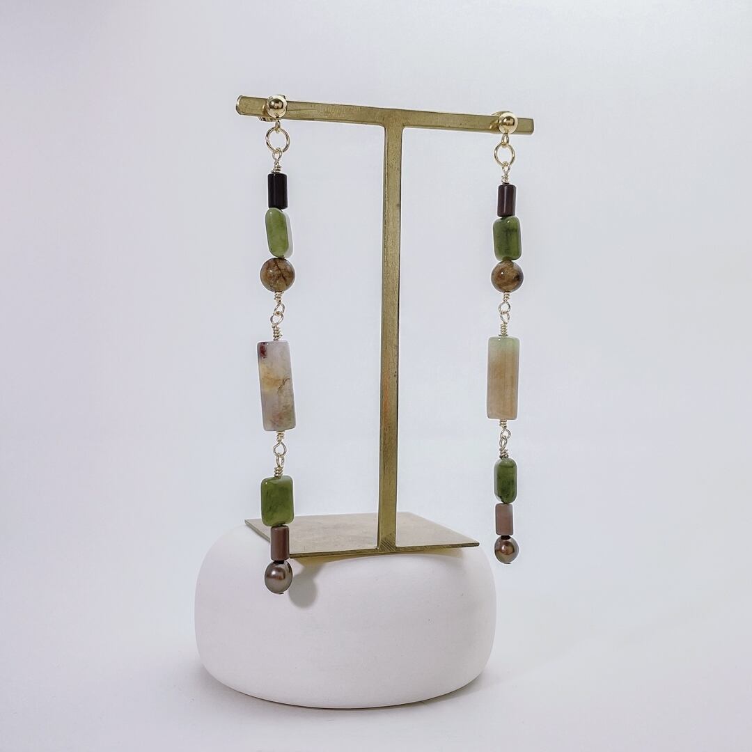 淡水パール、marble stone、mixcolor quartz、green jadeite、green opal