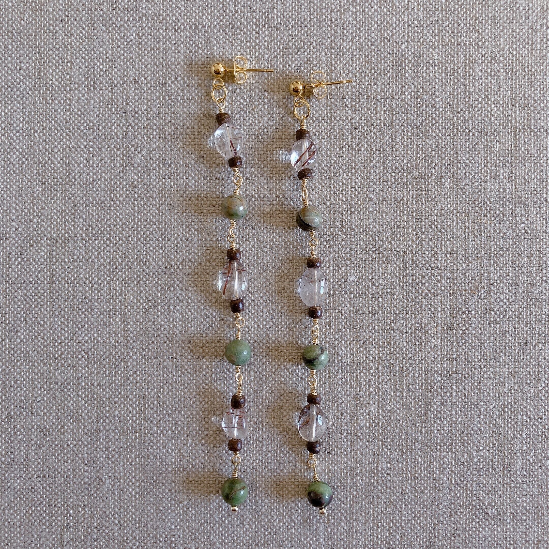 ルチルクォーツの透明感が重たくなりすぎない印象に。