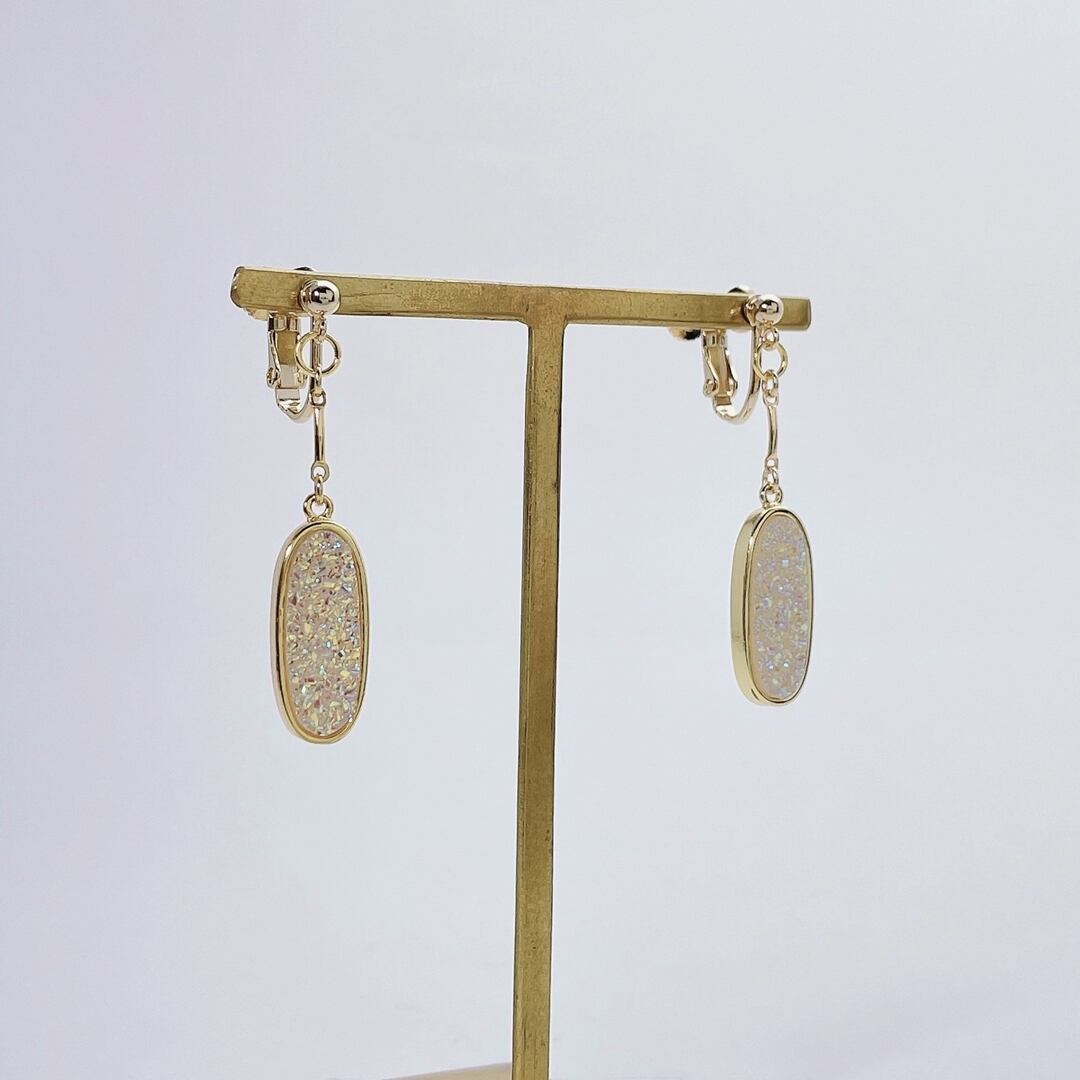 天然石の上からオーロラ加工された、まさに煌めきが詰まった耳飾り。